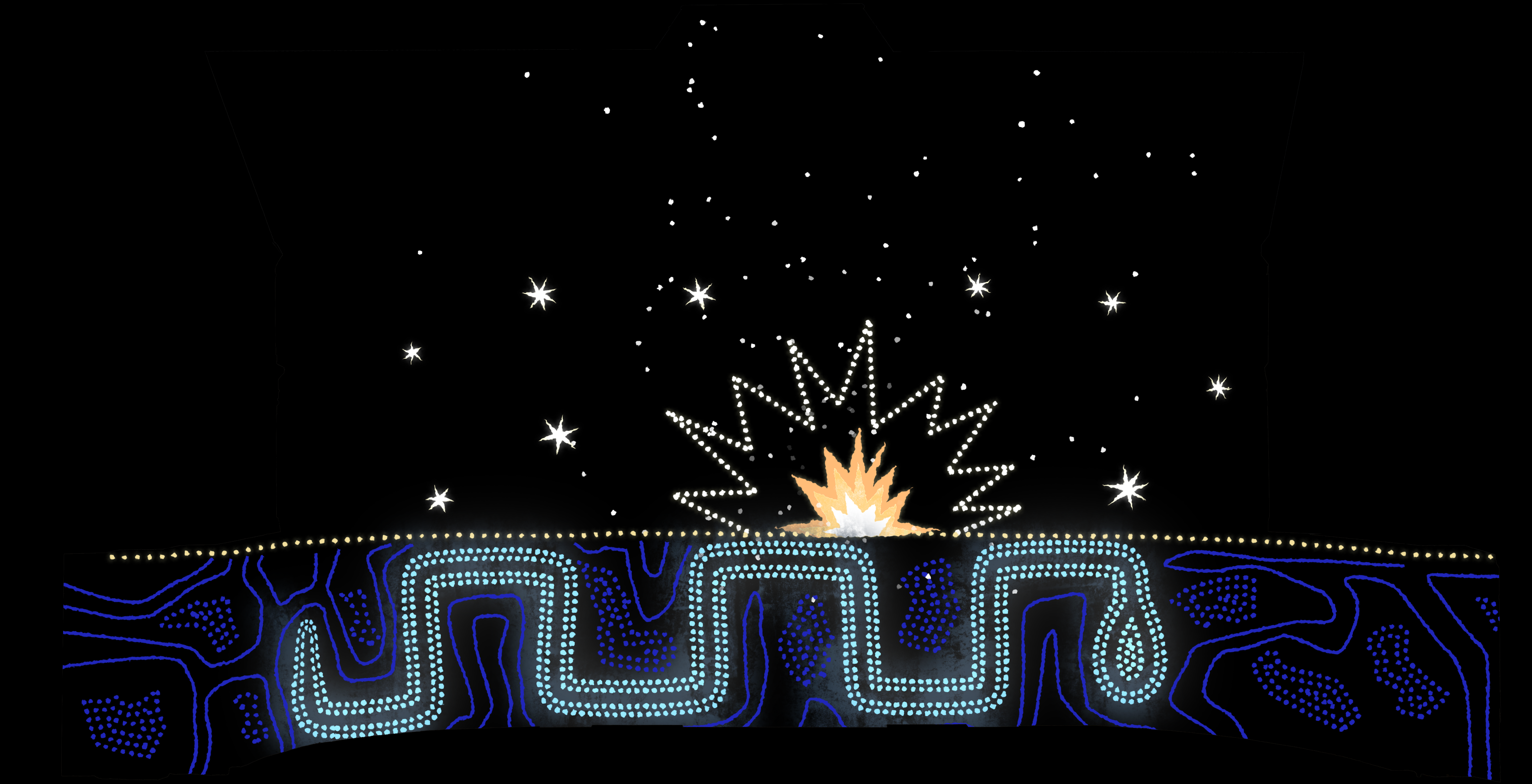One day, a star broke loose from the sky and fell to earth. The great ancestors, awakened by tremors, emerged from within the Earth and moved across this expanse.