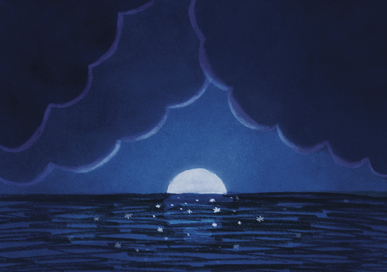 Selection of illustrations for a collection featuring the winning haikus from a writing competition organized by Le Labo des Histoires and Génération Mer.
