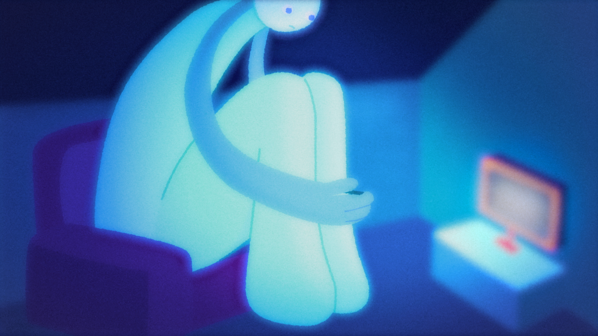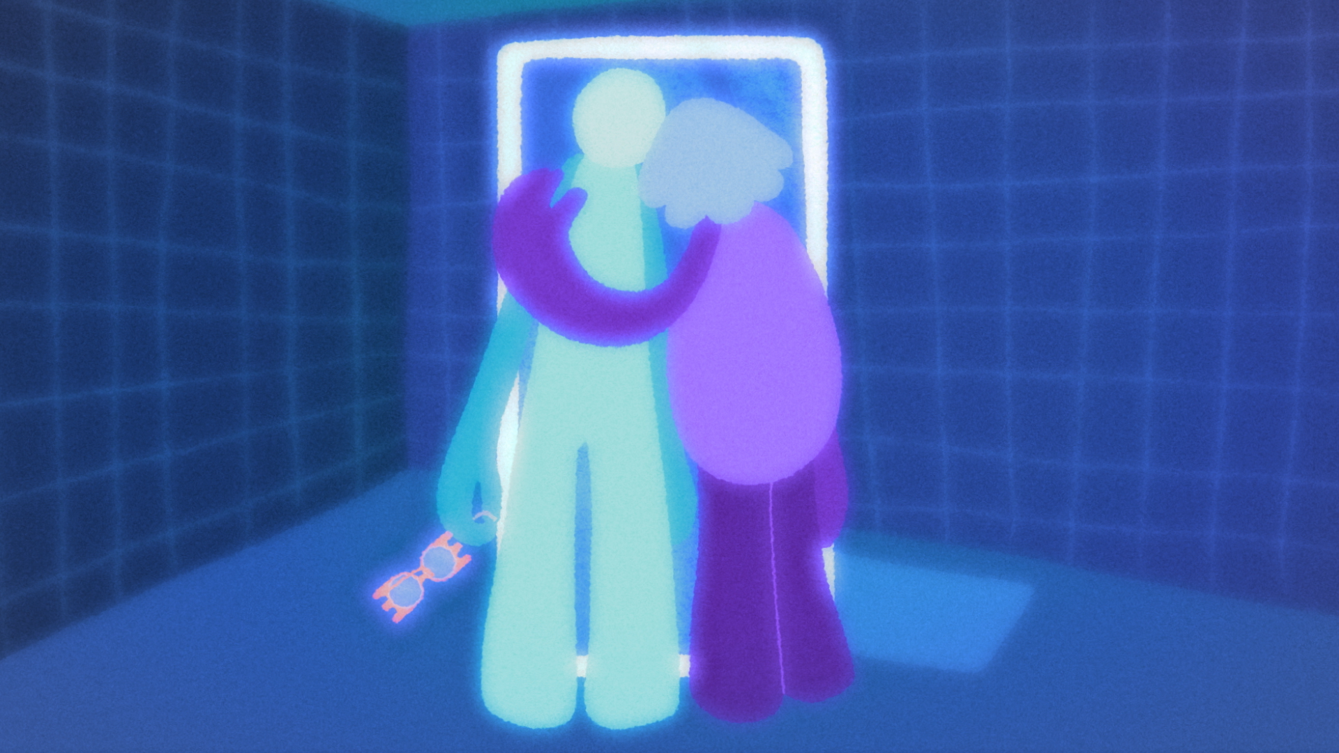 A young child watches an advertisement for magical glasses that would change one’s self-perception.